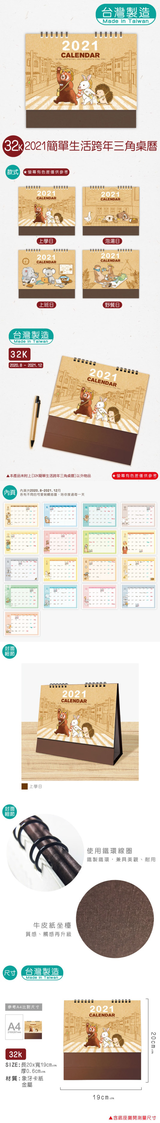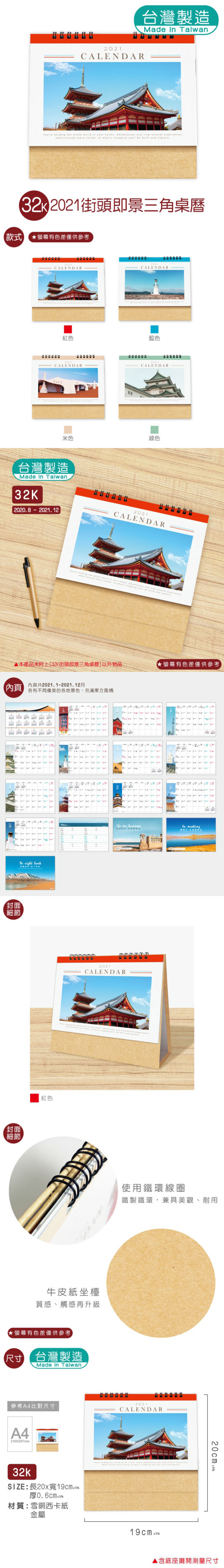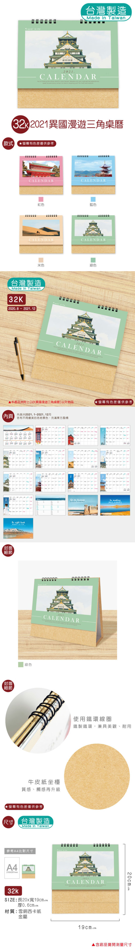 32K異國漫遊三角桌曆-2021 |