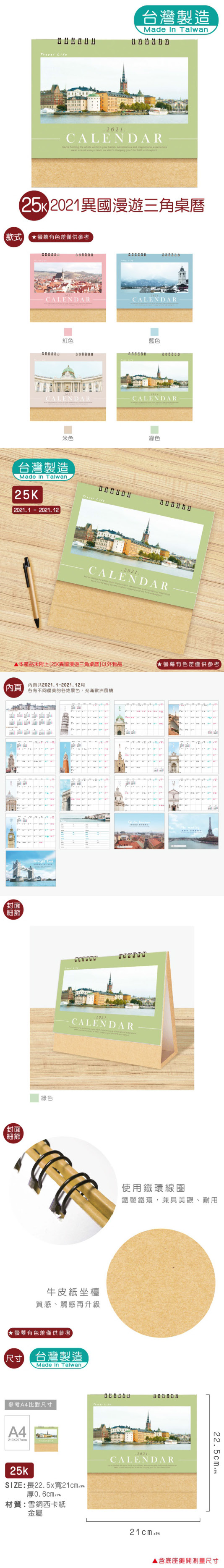 25K異國漫遊三角桌曆-2021 |