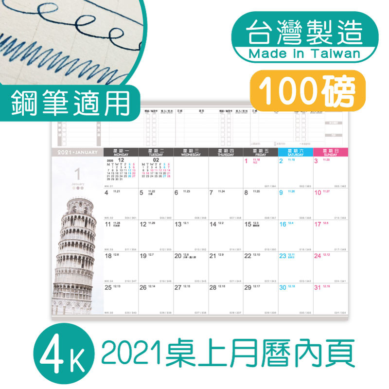 4K桌上月曆內頁包-2021