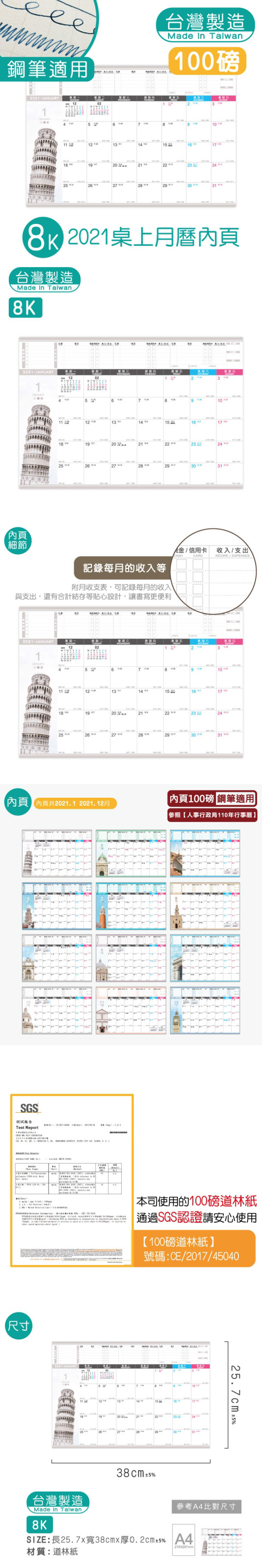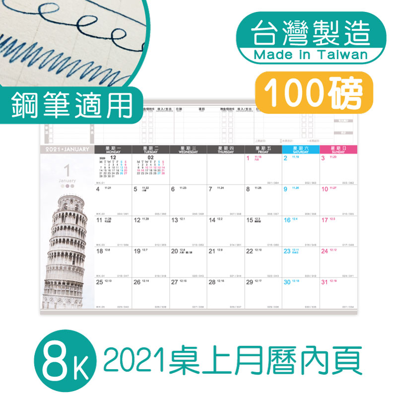 8K桌上月曆內頁包-2021